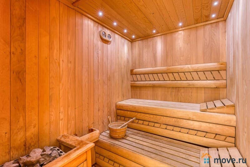 В вилле 5 спален, 5 ванных комнат, сауна, гараж на 2 машины, гардеробная, прачечная, мастерская, подвал и кладовая.